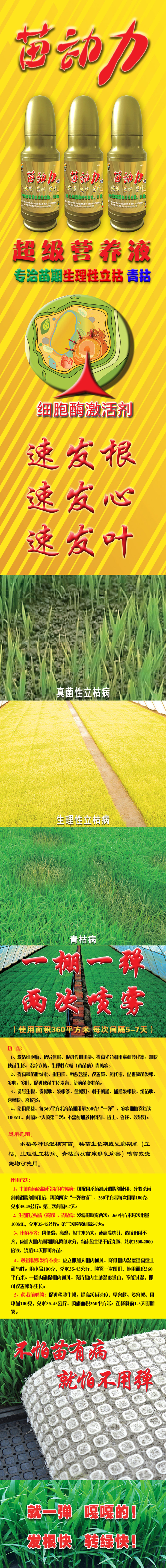 1、激活細(xì)胞酶、誘導(dǎo)休眠、促進(jìn)代謝功能、提高光合利用率和轉(zhuǎn)化率、加快秧苗生長(zhǎng)。治療立枯、生理性立枯(黃苗?。┣嗫莶?。